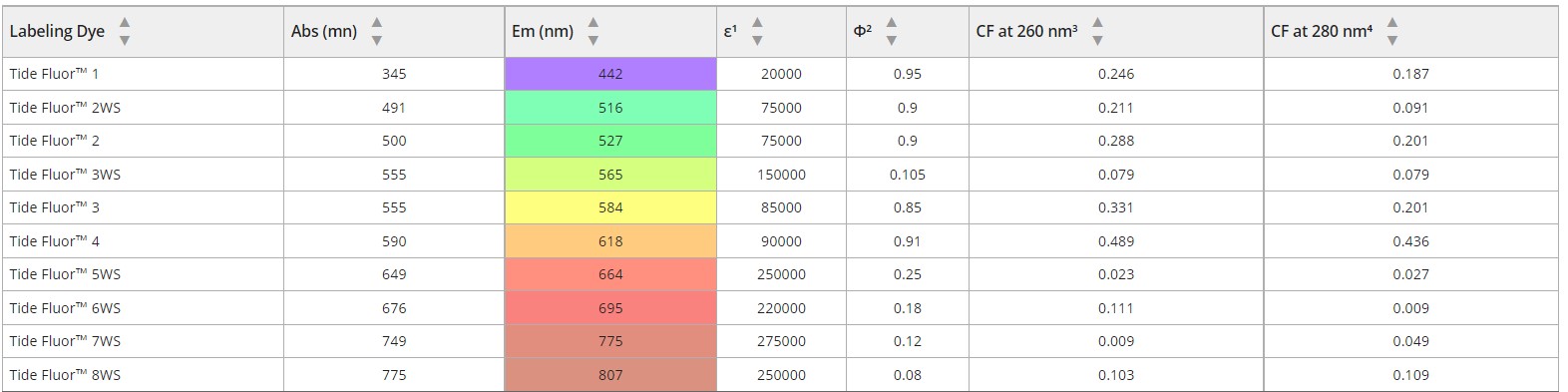 Tide Fluor™ 染料光譜特性