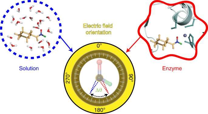 “在基本層面上,我們試圖更好地了解酶的工作原理,在這項研究中,我們通過引入電場方向來增加一個新的維度,這被認為對酶的催化功能具有關(guān)鍵影響,”毛說,化學(xué)博士后學(xué)者,在斯坦福大學(xué)化學(xué)副教授、高級合著者 Thomas Markland 的實驗室工作。