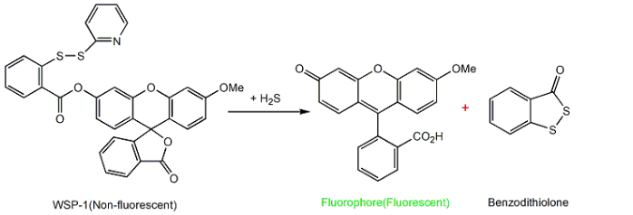 | Introduction | WSP-1 is a reactive disulfide-containing, fluorescent probe designed to detect H2S in biological samples and cells. |